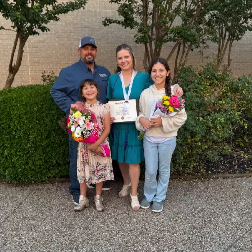 Tina has always been rooted in community. Originally from the small town of Benjamin, TX, she married her husband, Adan, in 2009—just before his deployment to Iraq. Together, they’re proud parents of two amazing girls.